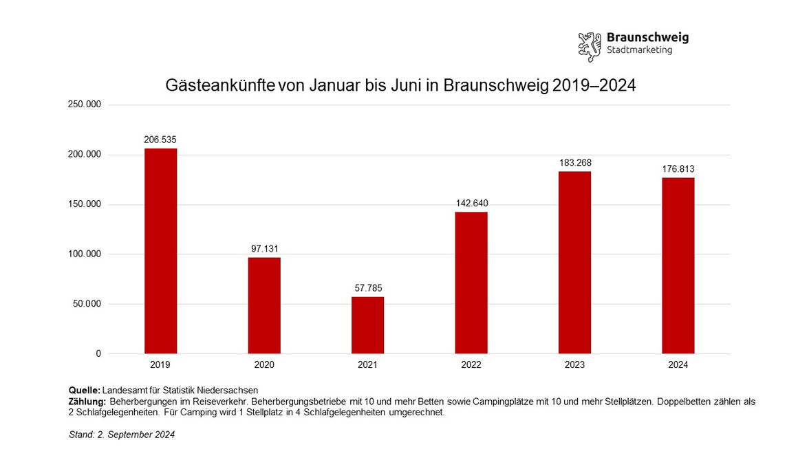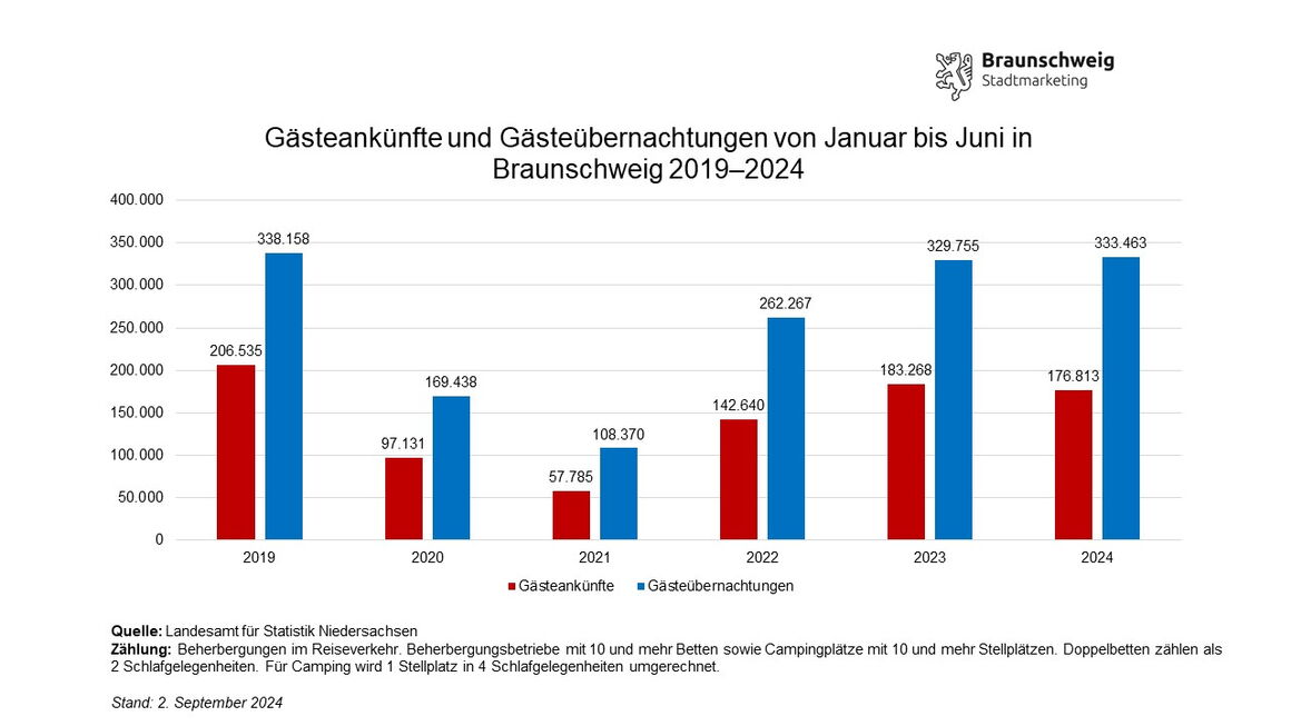 Rund 177.000 Gästeankünfte und über 333.000 Übernachtungen im ersten Halbjahr in Braunschweig