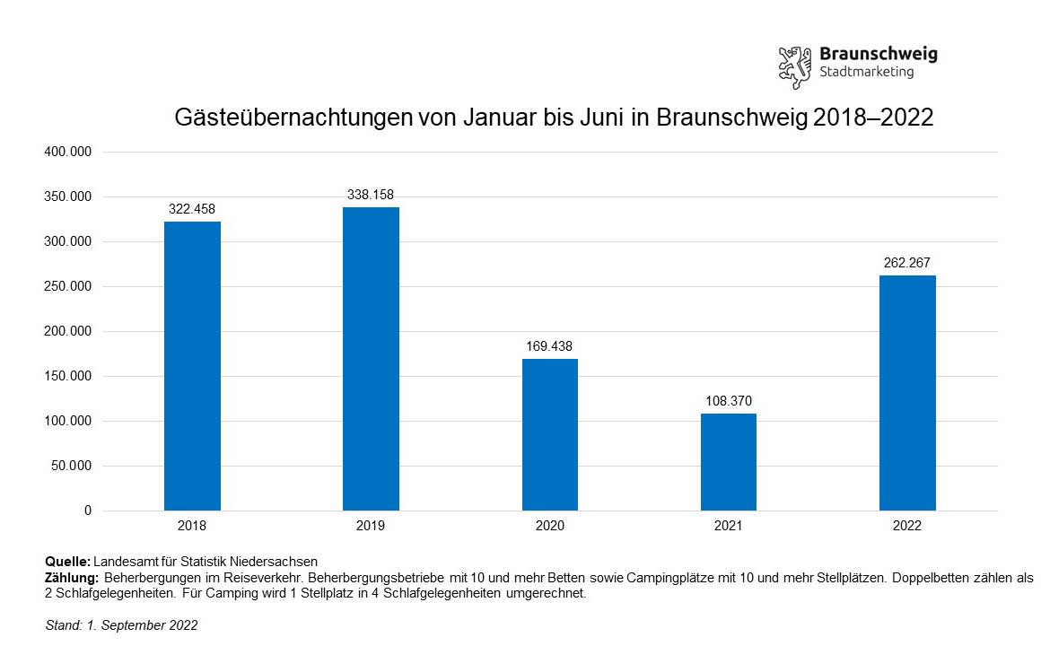 Rund 142.600 Gästeankünfte und über 262.200 Übernachtungen im ersten Halbjahr in Braunschweig.
