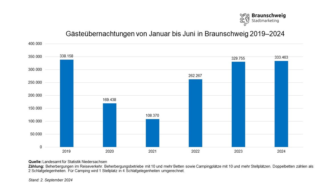 Rund 177.000 Gästeankünfte und über 333.000 Übernachtungen im ersten Halbjahr in Braunschweig